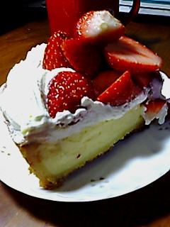 チーズタルトの上に生クリームと苺が居候しております。